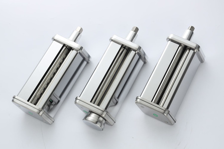 - Przystawka wałkująca do makaronu: Szerokość 140 mm, grubość regulowana od 0,2 mm do 2 mm, umożliwiająca dostosowanie ciasta do preferowanej grubości.