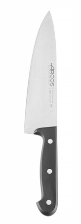 Wszechstronny i solidny nóż szefa kuchni z serii UNIVERSAL marki Arcos to narzędzie zaprojektowane do wielu zastosowań kuchennych. Dzięki długiemu, szerokiemu ostrzu sprawdzi się w krojeniu, siekaniu i porcjowaniu różnorodnych produktów spożywczych – od mięsa po warzywa.